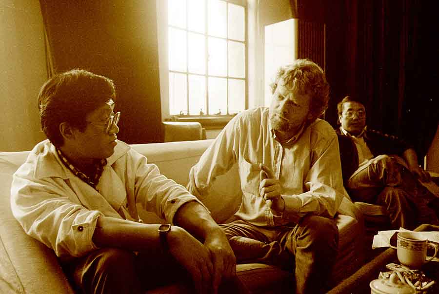 Chen Shenglai Director of the then Shanghai Peoples Broadcasting Station Art And Literature Station - what a LONG NAME for a Radio Station! - together with Brian and Zhou Rui Kang, Music Director of the Radio Station with the long name. This was an early meeting in 1989..... looks like we were talking about how much money I would bring them.